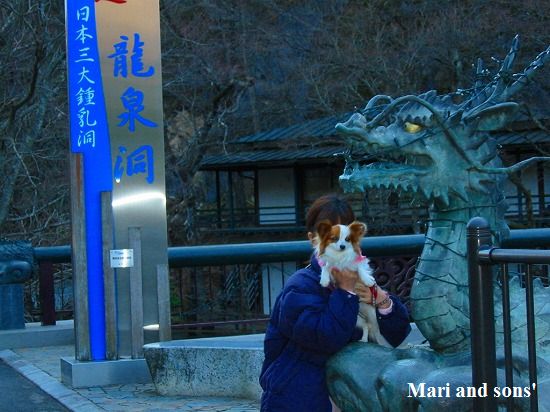 大きな龍の飾ってある欄干が迎え てくれました 残念ながらペットは洞窟内に入ることが許されない為 まりを遊ばせながら代るがわる見学することになりました |