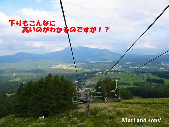 山腹で駆けっこを楽しんだ後再びリフトで下りましたが 登りより高さを感じると思うのですがやはり恐怖感は無いようです |