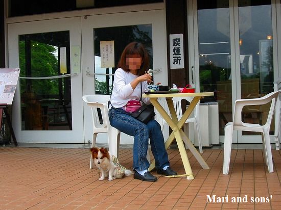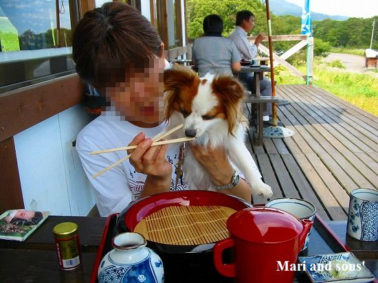 その後 テラスのあるお蕎麦屋さんで 昼食です まりも お相伴に預かります |