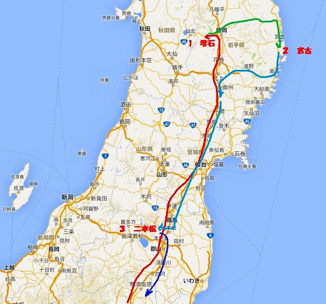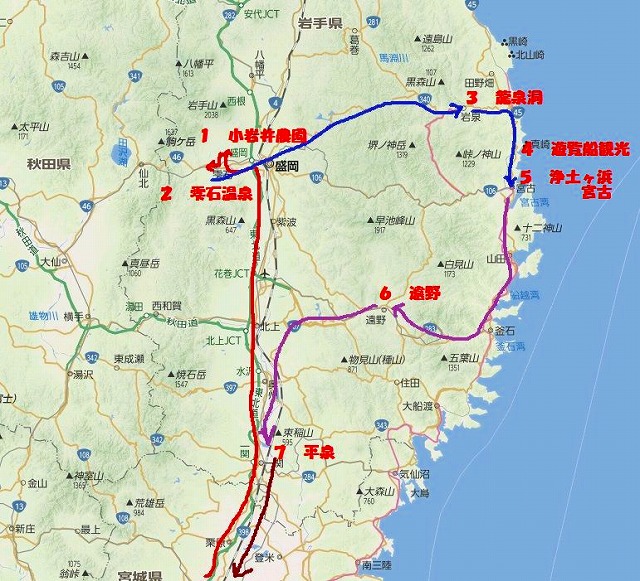 やはり 近いようでも車でとなると岩手は遠い! 今回の道程です |