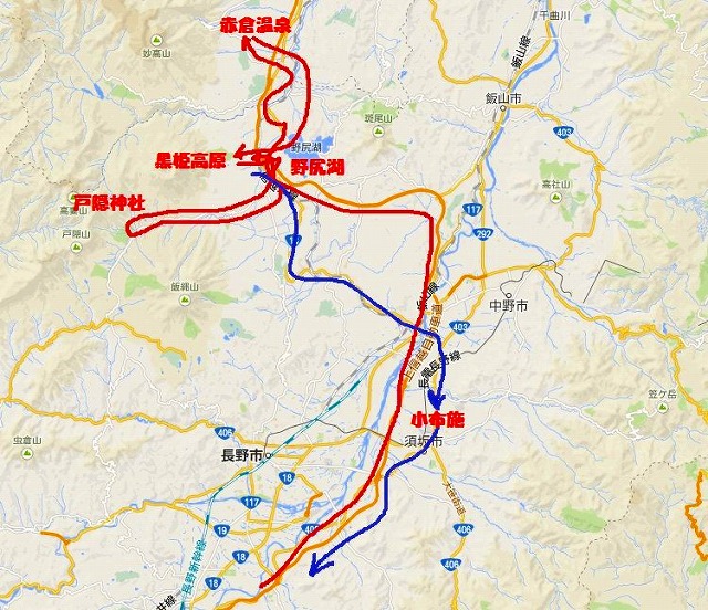最後が残念でしたが 全体では良かったと思いました 辿った道路は次の通りです |