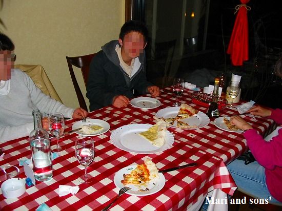 いずれの宿も食事はついていないので 外でとることにしました 雪景色の五色沼に程近い イタリアンレストランに予約して皆ででかけます