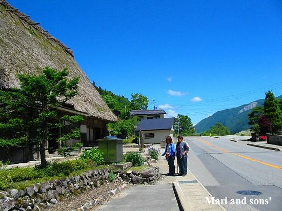 明けて二日目は快晴になりました 道中合掌造りで有名な五個荘を訪れますが その手前の道路脇に一軒だけ合掌造りのお宅がありましたのでついつい寄り道をさせてもらいました |