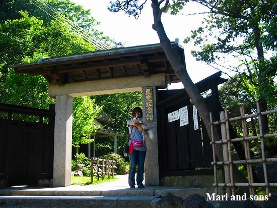 出口近くに 家老・西郷の像がありましたが これにお父さんが驚いたところ まりが何を思ったか その像に向かってほえ始めました | |