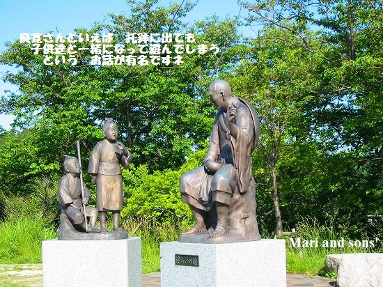 途中 新潟に入り 出雲崎で良寛さんの記念館の看板が目に入りましたのでよることにしました 何に使われるわけではないのでしょうが褒められるのは飼い主としても嬉しいものです ここでは良寛さんの書を見ましたが高校の時の書道の先生が良寛さんの書をお手本としていたのを思い出しました | |