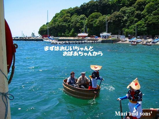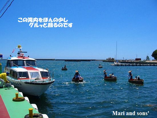 小木名物の たらい舟に乗ってみることにしました 結構湾内も波が立っているので内心ドキドキものでしたがほんの10Mかそこらを一周するだけでお仕舞ですから案ずるほどのことはありません