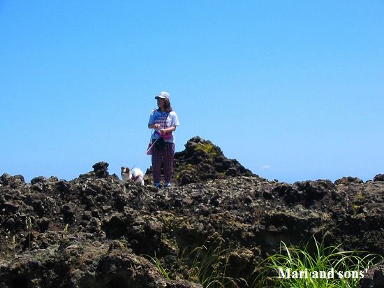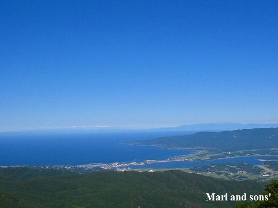 お昼を済ませて 島の南部を少し巡ってみました 荒い岩場 それに高台からの本州・新潟を望みます |