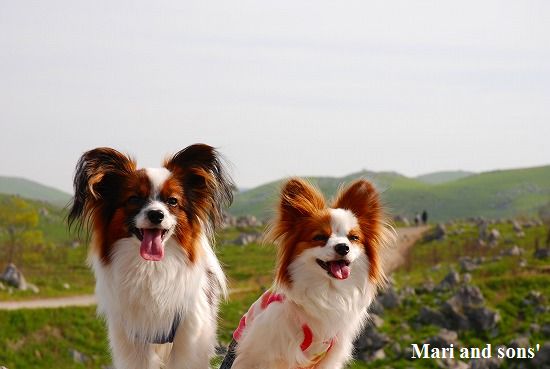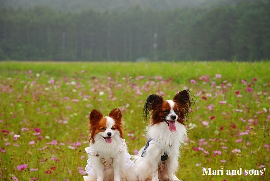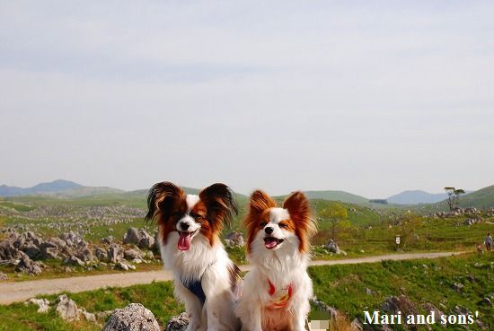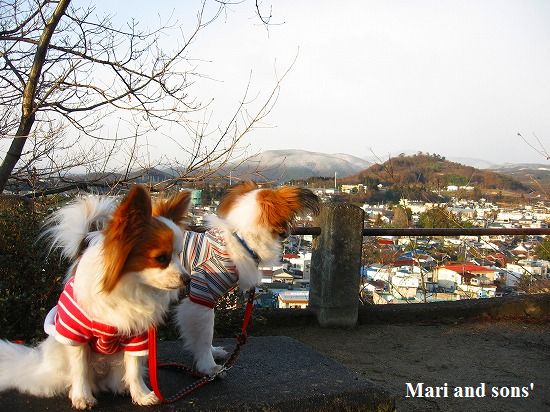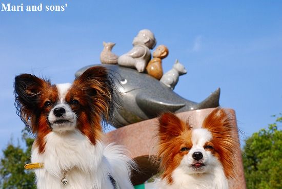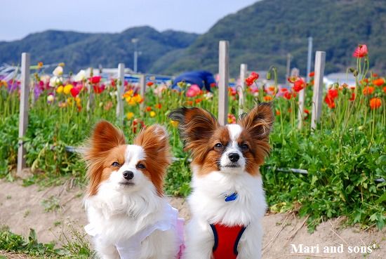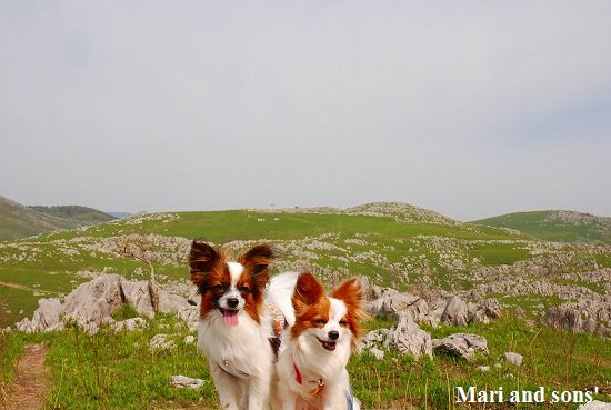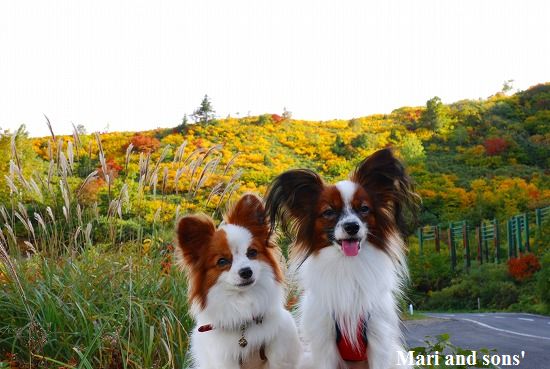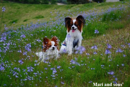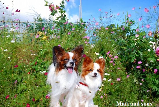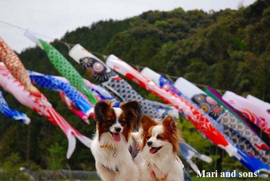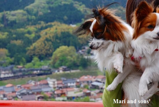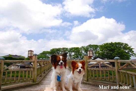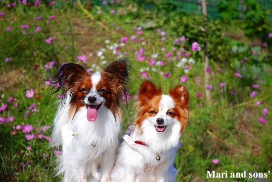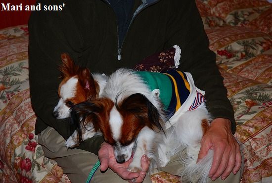 康太はその後も頑張ってお母さんの後に付いてくるのですが どうやらまりと一緒に居たいが為にだったようです 結局お母さんが二人一緒に抱っこして歩くと 満足 満足! |