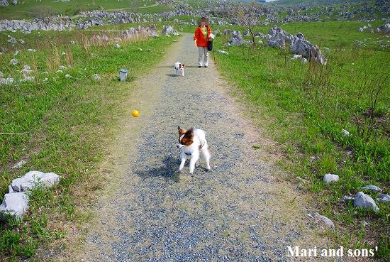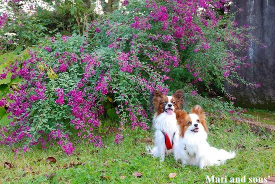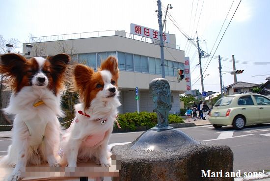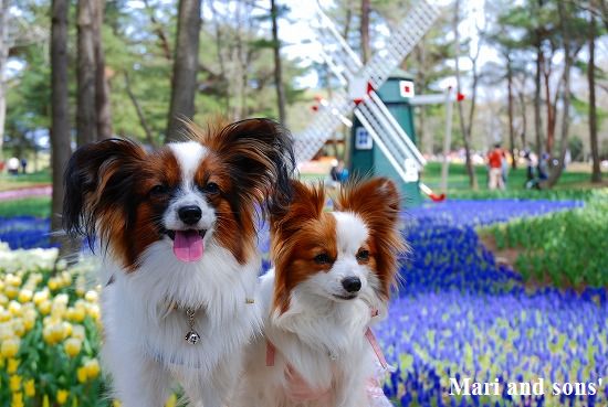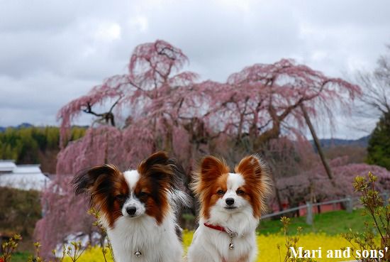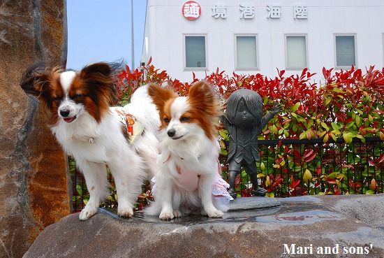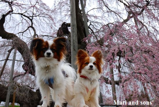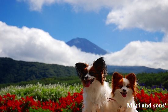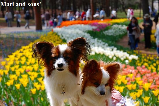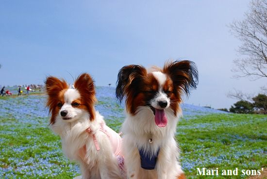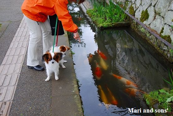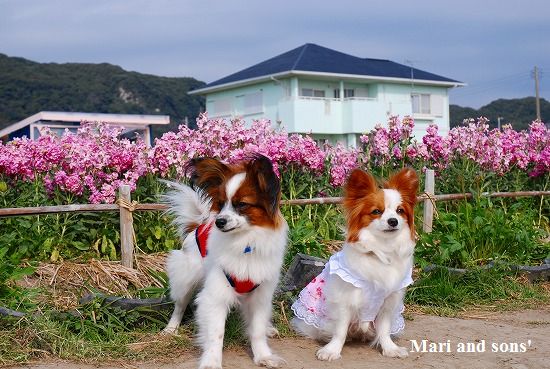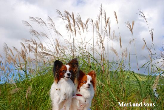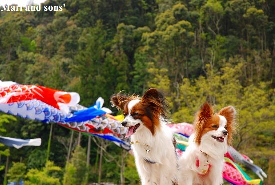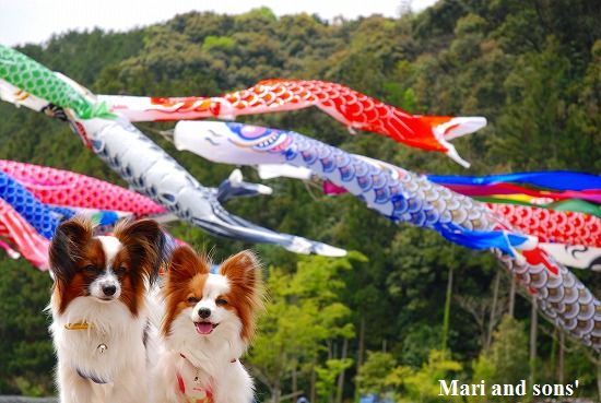 康太はその後も頑張ってお母さんの後に付いてくるのですが どうやらまりと一緒に居たいが為にだったようです 結局お母さんが二人一緒に抱っこして歩くと 満足 満足! |