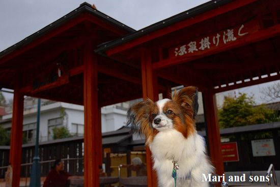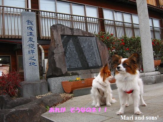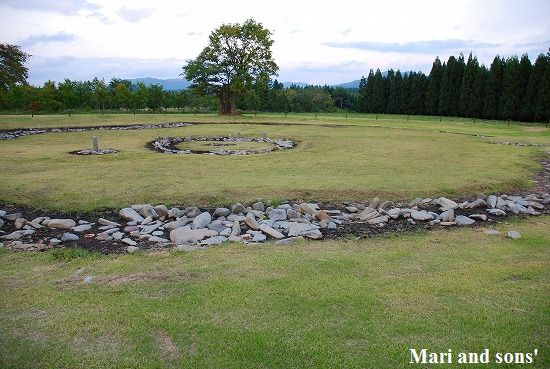 温泉宿ではありませんから チェックイン前に立ち寄り湯を探して大湯の方へ廻ってみました すると ”ストーンサークル” の看板を見つけました ペットの立ち入りは禁止となっていましたが抱っこで写真撮影だけさせてもらいました でも広くて綺麗な敷地でしたので二人とも抱っこを嫌がって困りました |