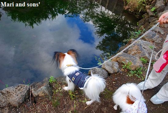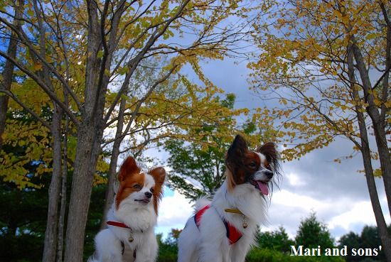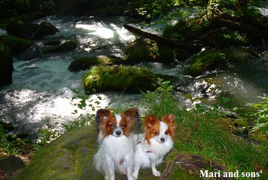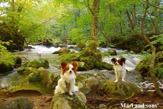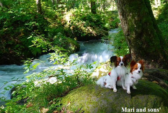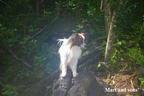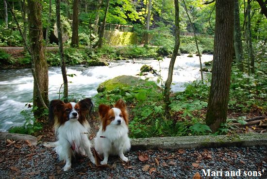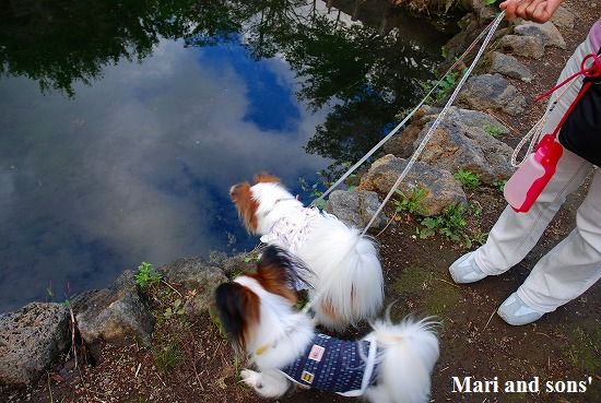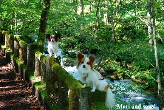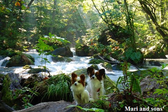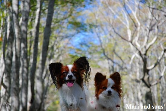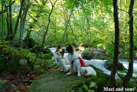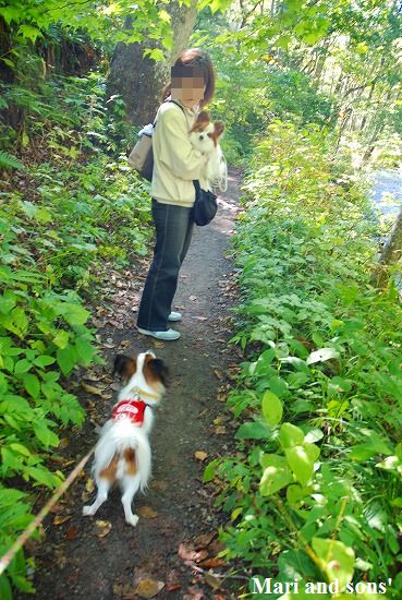森林浴でたっぷりマイナスイオンを浴びながら まりと康太も普段歩けない 自然の中の散歩を満喫しているようです |