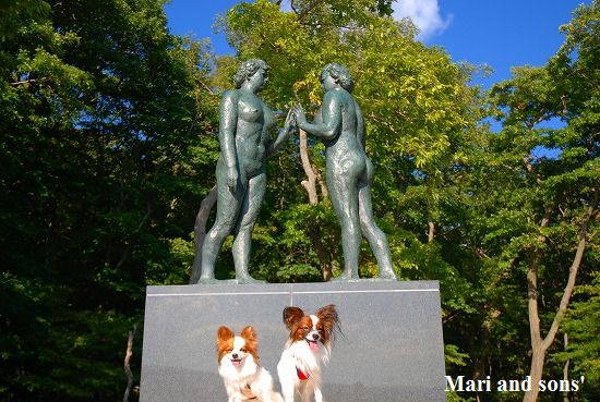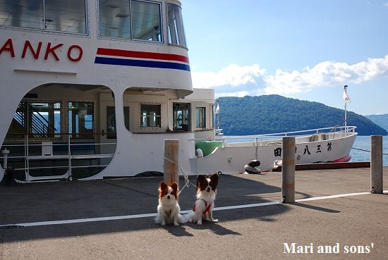 遊覧船は乙女の像のある休屋までの片道50分の行程なので お父さんが車を取って休屋まで来てくれると丁度良いタイミングです 湖面は鏡のように静かで船に弱いお母さんも安心です まりと康太も湖上の景色を楽しんでくれたかな? 下船して お父さんと合流しお決まりの乙女の像で写真を撮った後は 駐車場横の芝生の広場で昨日買ったリンゴやおイモで腹ごしらえし 康太は勿論ボール遊びを堪能しました |