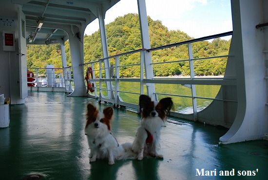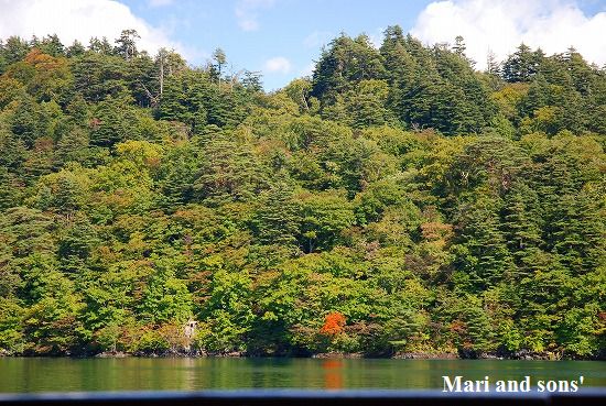 湖畔に着くと遊覧船案内のオジサンから声が掛かりました お父さんは車を取りに戻らなければならないので バスに乗って石ヶ戸へ引き返し その間 まりと康太はお母さんと3人で遊覧観光です |