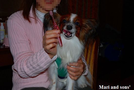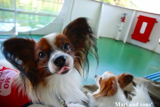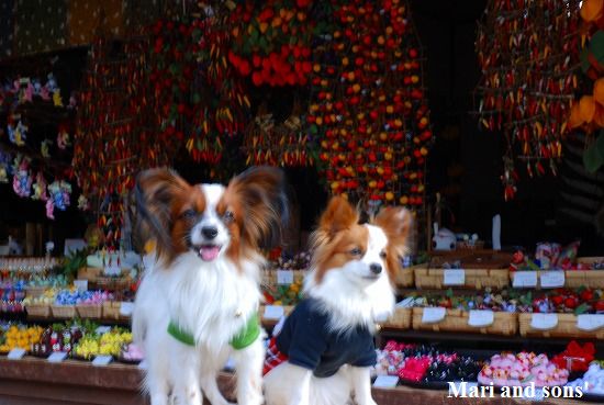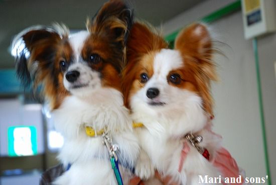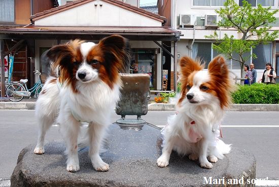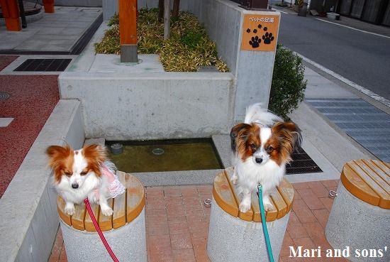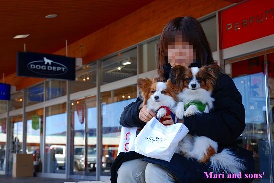 ここで 康太も7ヶ月のお兄ちゃんになったので大人用の首輪を買いました まりもお揃いで買ってお店のお姉さんにオヤツまで貰って大喜びです |