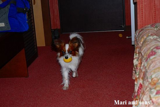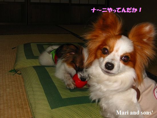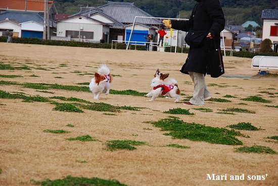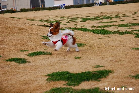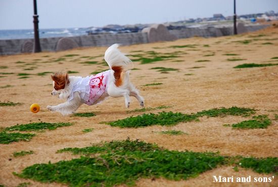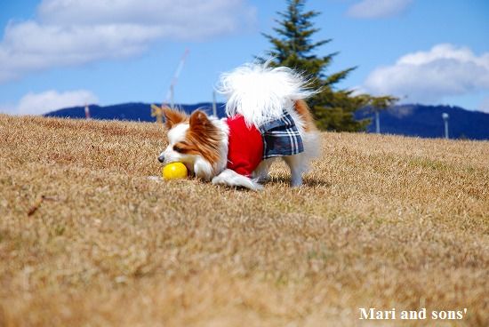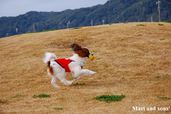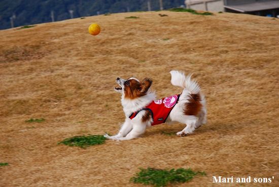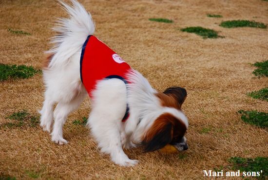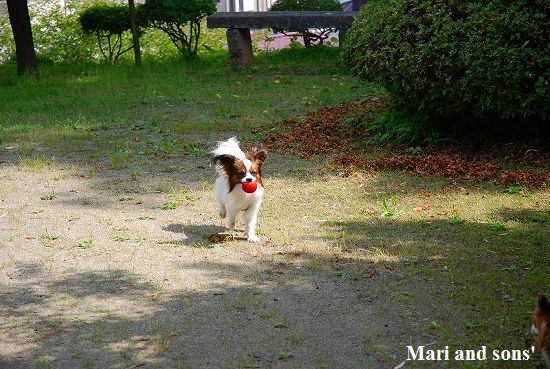 まりは それほどボール遊びが好きではないのですが 康太が楽しそうに走るのを見てチョットやって見るだけです |