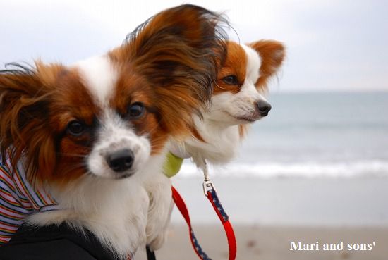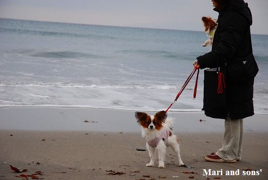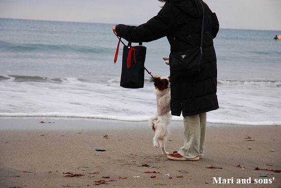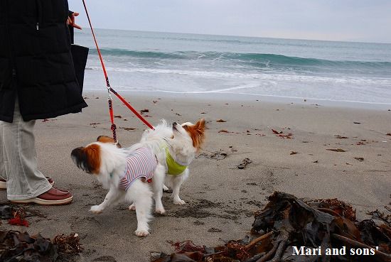 まりは大人しく座れたのですが 康太は寒さと水際の恐さが合いまったのか直ぐに動いてしまうので