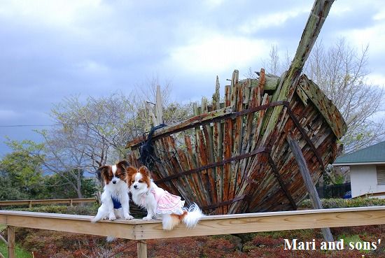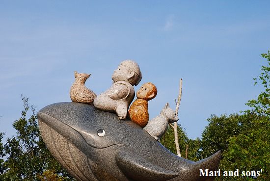 岬の高台にはマリンタワーがあり その前の広場には難破船のようなモニュメントがありました 説明書きが消えていて何なのか判明しませんでしたが 何はともあれ記念写真 |