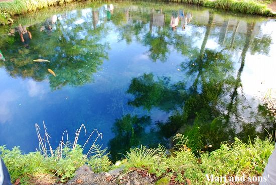 青空に赤や黄の紅葉が映えます 睡蓮沼の正面は絶好の撮影ポイントのようですが 他の観光客が入れ替わり立ち代りでポーズを取っているので 私達は人の居ない端の方でゆっくり撮影です それでもこんなに綺麗ですから充分ですね さて余りのんびりしている時間もありません 先を急ぎましょう |