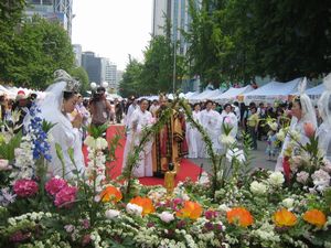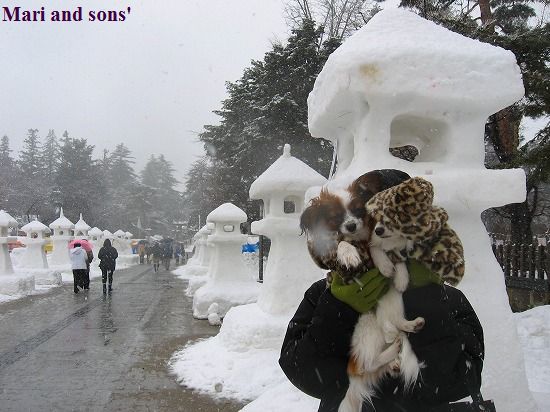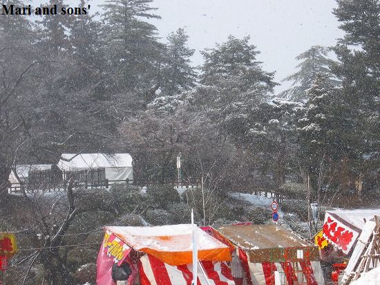 通りかかった米沢市内で「上杉雪灯篭まつり」の看板を見つけ 折角有名なお祭の日に米沢に来たのだから寄ってみようと 会場の上杉神社に寄ってみました |
