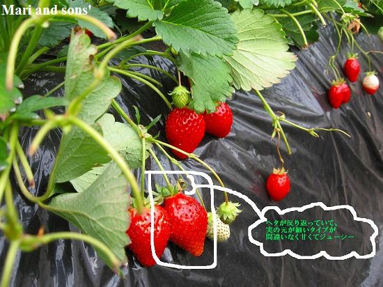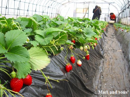 イチゴ狩り4度目でおばあちゃんが確実に甘くて香りの濃いイチゴの判別方法を確立しました 今年の暖冬と去年夏以降の天候の影響で出来は例年と比べると今一つと ハウスのおばさんは仰っていましたが メロンのような芳しさと甘いジュースで今年のイチゴにも一同大満足でした |