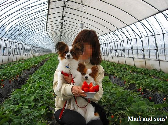 まりにとって4度目 康太には初のイチゴ狩りは 毎年行く JAはが野いちご団地です 予約も要らず時間制限無しなので ワンコ連れでも交代で存分に楽しめます |