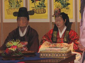 ここでおかあさん発案の撮影台が威力を発揮します 脚立の天板にもう一回り大きな板を載せて二人を主役の写真撮影ができるようにしたのです |