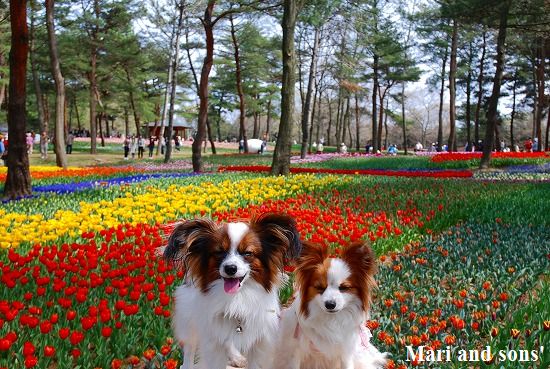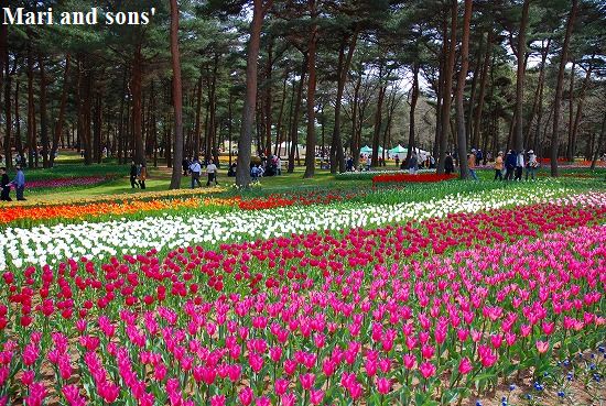 さてその近くに たまごの森という場所があり色とりどりのチューリップが沢山咲いているのが目に留まりました |