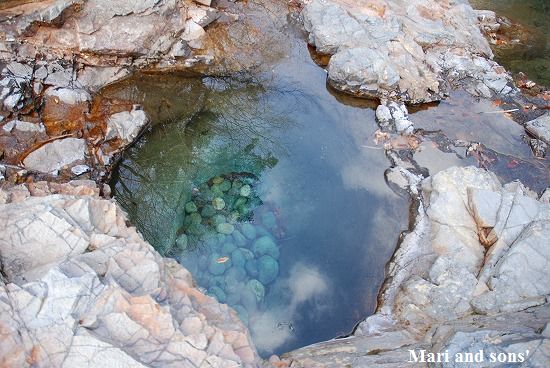 先ずは石ヶ戸休憩所の裏手に回り少し上流の『三乱の流れ』でパチリ そして旅行パンフレット等に良く使われる『阿修羅の流れ』 『飛金の流れ』に『雲井の滝』 |
