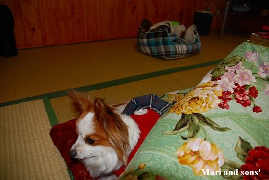 布団を敷いてもらって持参のシーツを被せ まりと康太とコタツに足を突っ込んで安静です