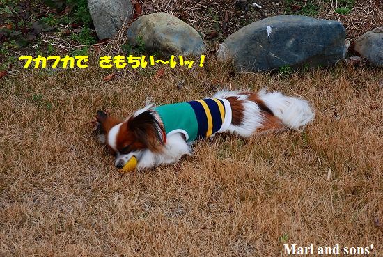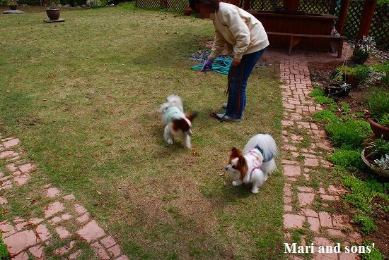 二人とも 踏みしめる感触が心地よいのか 思わず顔を芝生にこすり付ける ”スリスリ” がでてしまいます