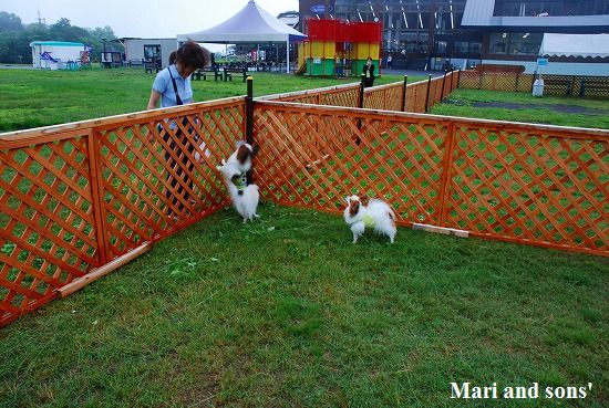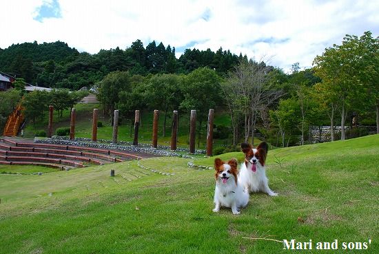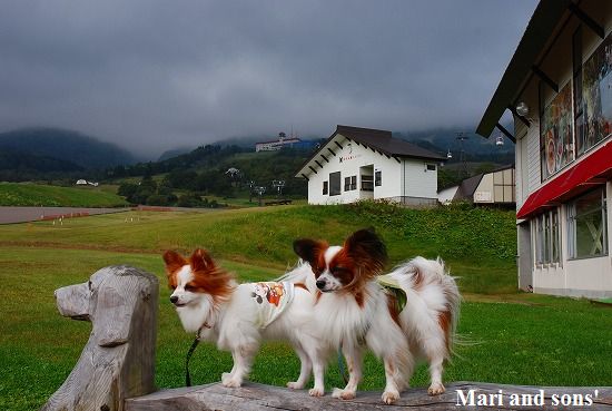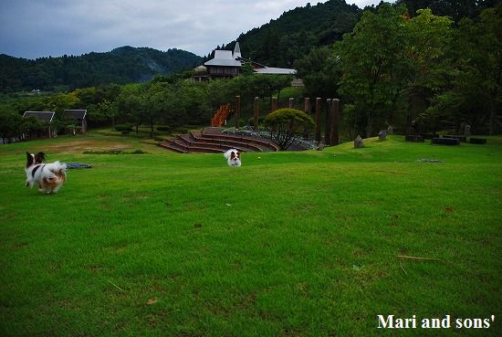 いや〜ビックリ!!! 山の頂近くに開けた敷地三百坪の半分を綺麗に芝生が覆っています まりも康太も大はしゃぎ! こんな凄い芝生があると知っていたらSAのドッグランなんかに寄らずに直行すれば良かったぁ |