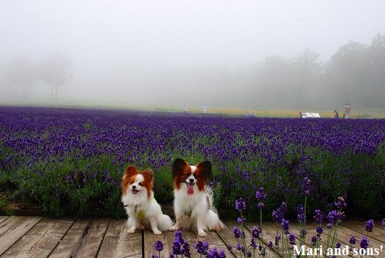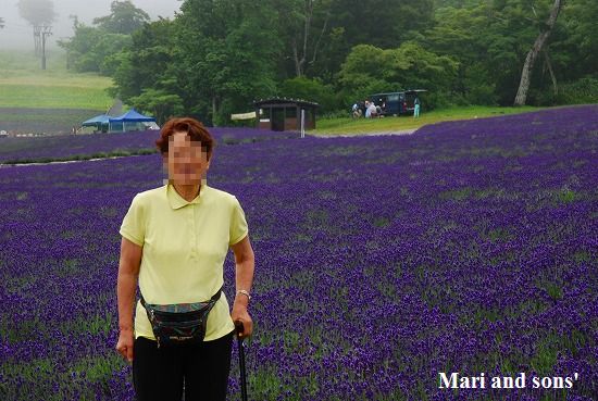 肌寒く霧も晴れませんが 富良野を懐かしんでラベンダーを背景に写真を撮れればと思ってやってきたのです
