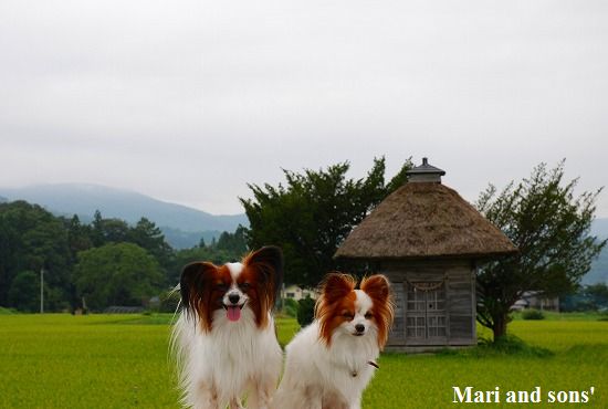 以前のモモ狩りの後で 立ち寄り湯に寄った記憶があったので近所をウロウロしていたら みさか桃源郷公園 と言う公園に行き当たりました 広々とした気持ちのいい公園でしたので ここで二人とも チョット リードを緩めてストレッチ です |