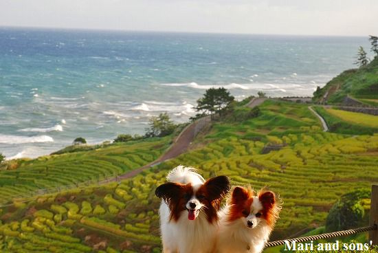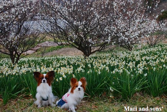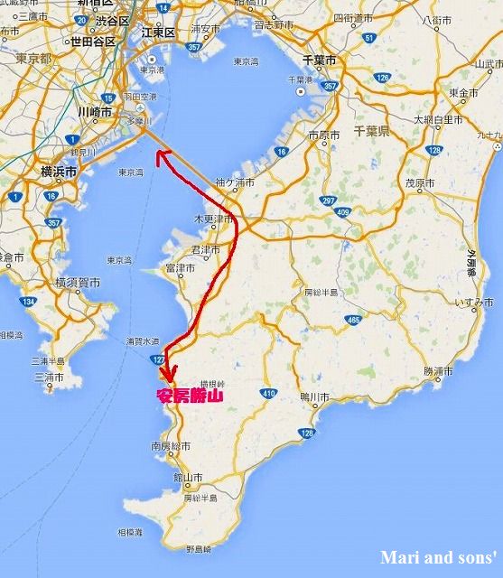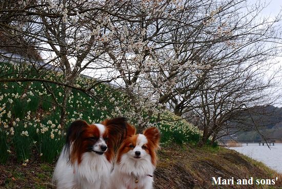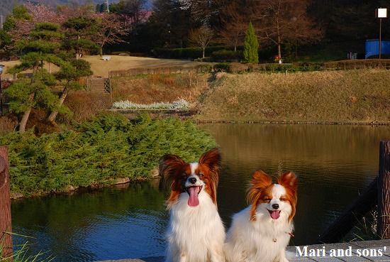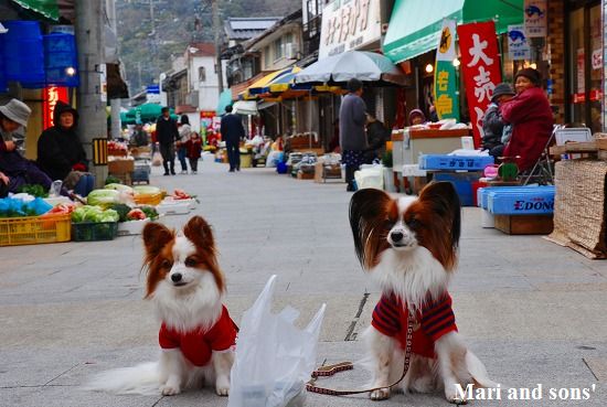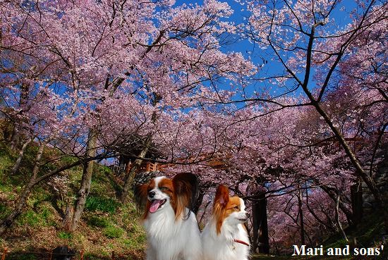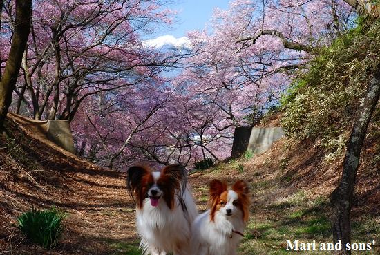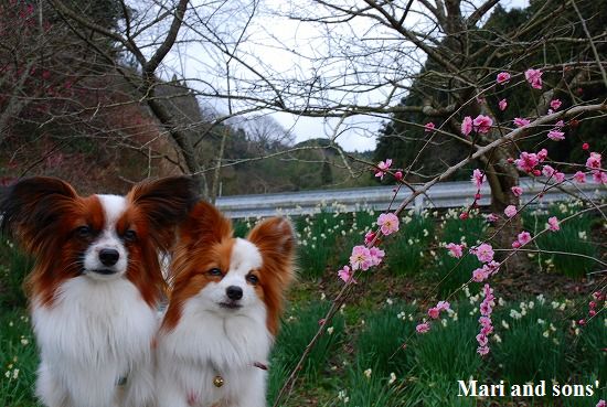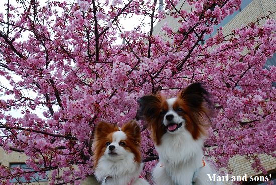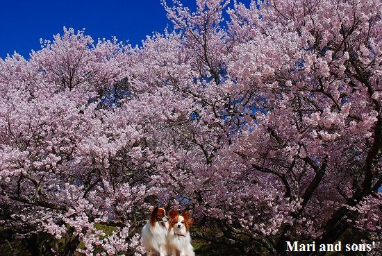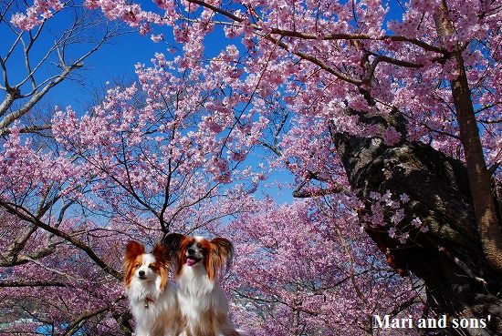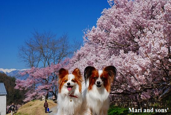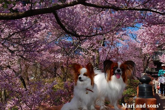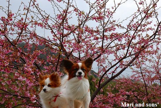 さてここ安房勝山は 源頼朝が難を逃れる為に避難した土地であるという故事から伊豆の河津と交流を深め その名物の河津桜を移植して"頼朝桜"として町を挙げて育てています そこで 叔母さんのとこの豆芝のチャッピーちゃんにも道案内をお願いして 皆でお散歩しました |