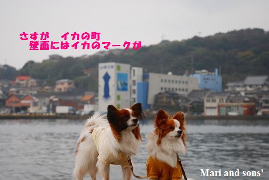 港を挟んで呼子の街並が見えます 水際に新しい遊歩道が整備され透き通った海や漁船の行き来を眺めることが出来るようになっていました