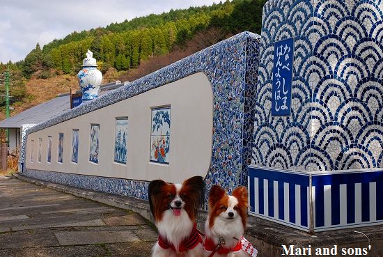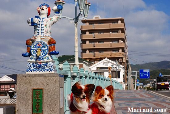 まずは 里の入り口に掛かった橋の欄干が鍋島焼を模しています 記念の一枚です |