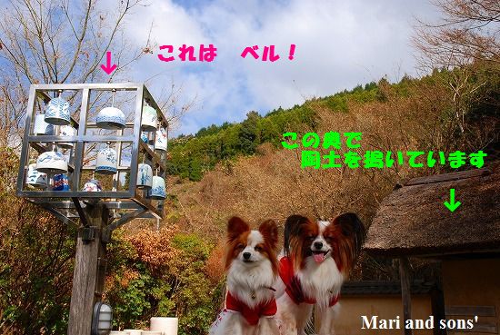 次の一枚は ご存知の めおとしの塔 を入れての一枚です ここには陶土を粉にする臼と杵が水車の動きにつられて動いておりました 因みに14個の風鈴の音は ウゥ〜ン!?でした |