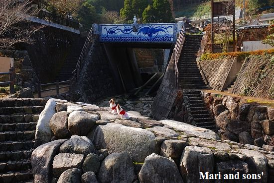 上の写真は両岸を結ぶ橋に吊り下げられた絵馬を撮ったのですが暗くて分っていただけそうにありません