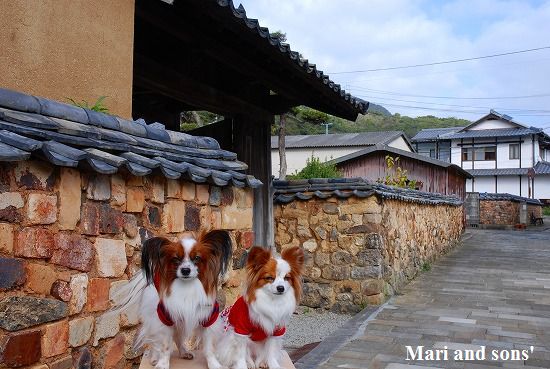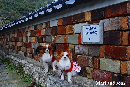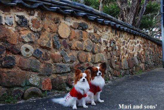 神社から下って町に戻り コレマタ有名な ”トンバイ塀” を背景に記念撮影です |