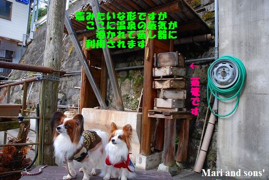 確かに凄い 何処までが路地で他家の勝手口か分りません 配達もこれでは大変でしょう 途中 名物の高温の蒸気を利用した竈がありましたので 記念の一枚です |