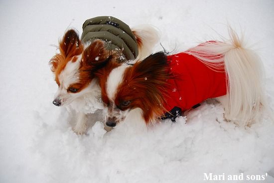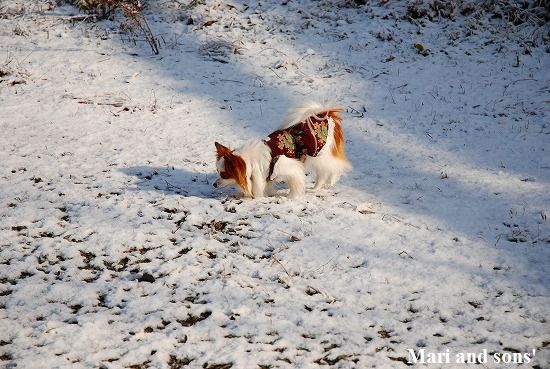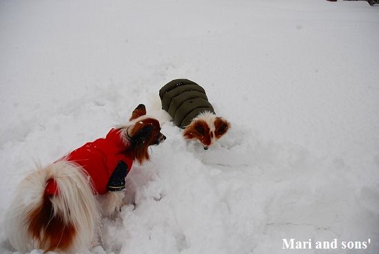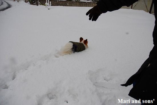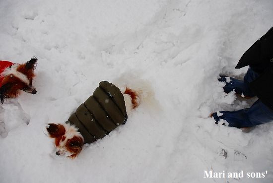 二人を放してやると まりは早速新雪をラッセルして大喜び |