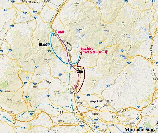 おじいちゃんが亡くなって 何かと慌しい日々が続きましたが それもひと段落して少し落着いた日常が戻ってきました ただ 折角梅雨明けしたと思ったのに梅雨の戻りのような空模様です でもまりのお天気パワーを頼りに 思い切って出かけてみることにしました いつものお約束 高速代の節約という事で おばあちゃんの所に前泊して 朝というより夜中2時半起き 未だ真っ暗な3時に出発です 今回は群馬県沼田でブルーベリー狩りを楽しみ関東随一と謳っているラベンダー畑を愛で 近郊の温泉で疲れを癒す計画です |