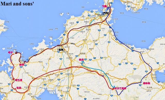 下関名物のふぐ料理をとも思ったのですが 贅沢は禁物です 途中のファミレスで夕食をという事にして市内から東を目指します