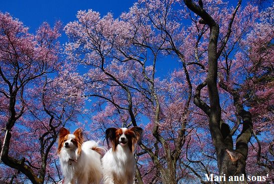 ほんとに朝からお天気に恵まれた一日でしたので 青空と高遠桜の濃いピンクのコントラストが綺麗です |