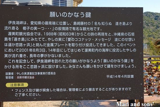 この海岸が恋路ヶ浜という名称なので それに沿った企画なのでしょう どうか 懸けた方々の願いが叶いますように!! |
