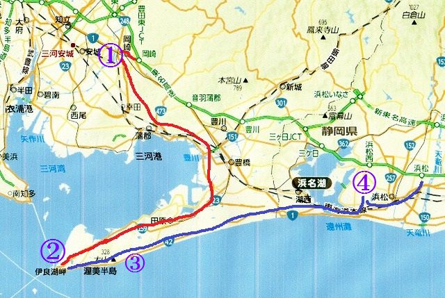 今回はお父さんたっての希望もあって 岡崎の八丁町の その名も八丁味噌の蔵元を訪ねてみます 後は下道をグルリと回り伊良湖 そして帰りには浜松で これまた有名な浜松餃子を試してみようという予定です どうなりますか |