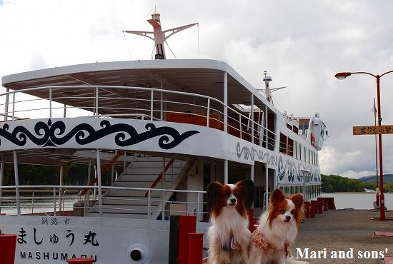 雨は降ったり止んだりを繰り返していましたが 丁度阿寒湖観光船に乗り込む時は良い天気になってくれました これが 乗船した観光船です |