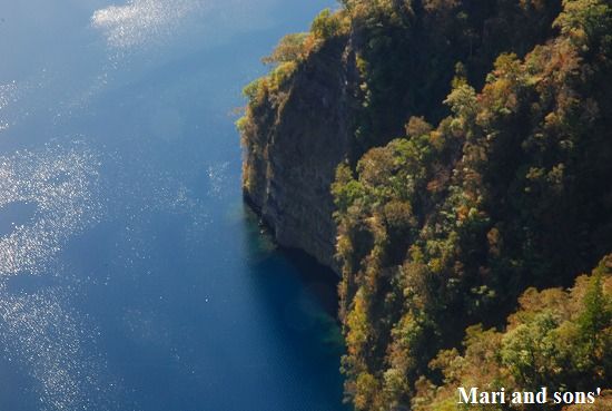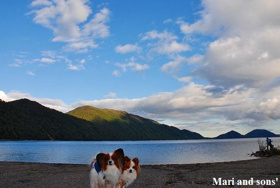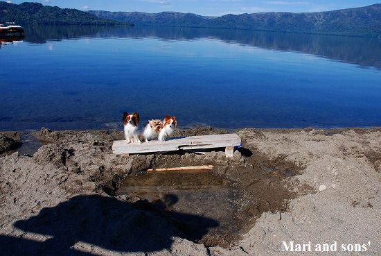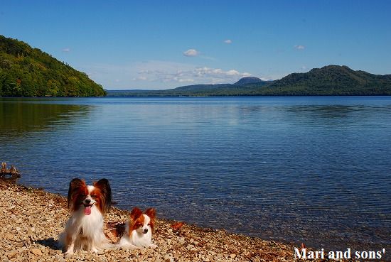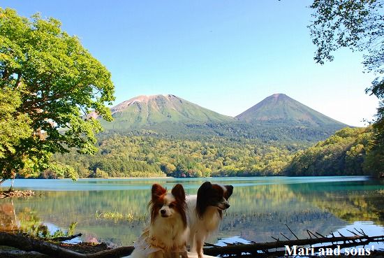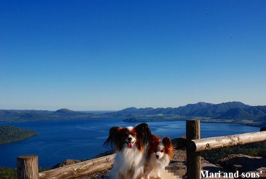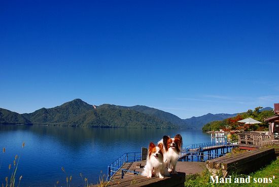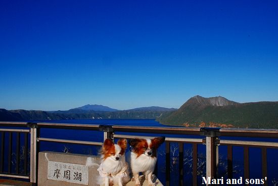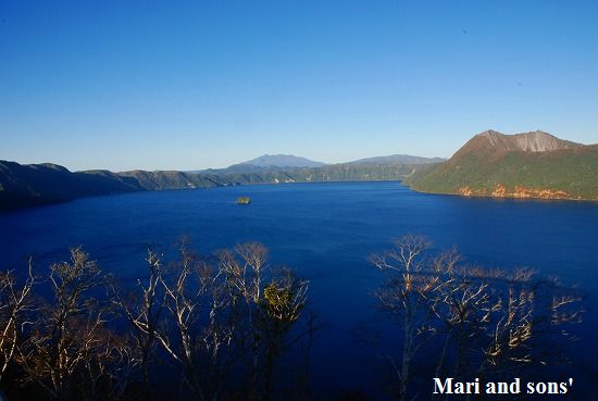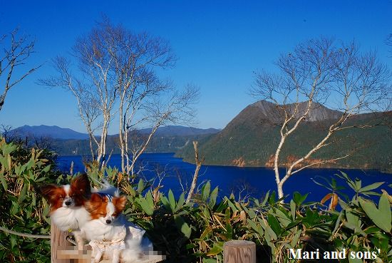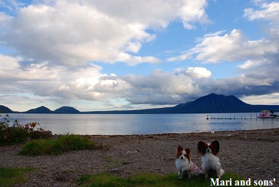 次に支笏湖へ回りましたが ここも大きな湖で湖面に綺麗にお山が映えていました |