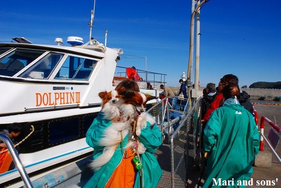 サテ 説明が終わって私達も含めて 全員が雨合羽を着こんだ上にライフジャケットの完全装備で船に向かいます でもまりと康太は丸裸ですから万が一の時はと思うと不安になります