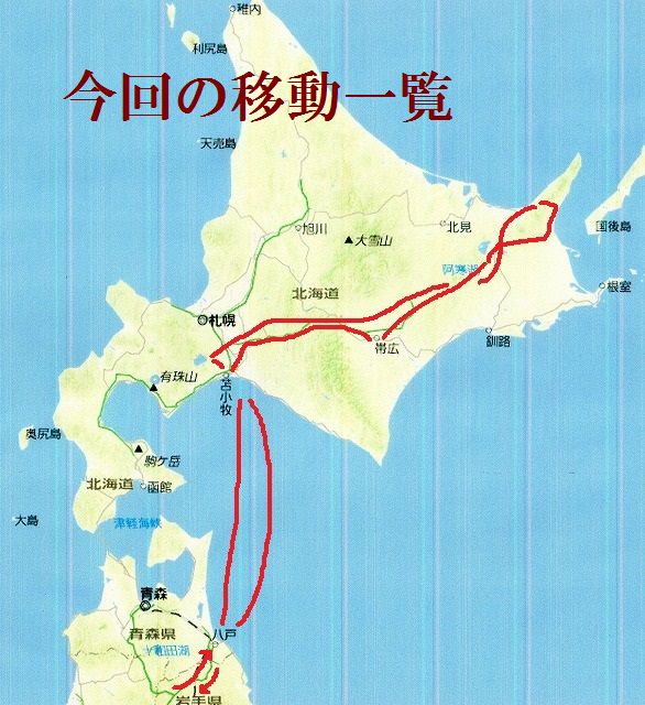 八戸からフェリーで苫小牧へ渡り そして 再び苫小牧に戻りフェリーで八戸へと言う行程です 地図で改めて見ると遠かったのだなぁといまさらながら思います |